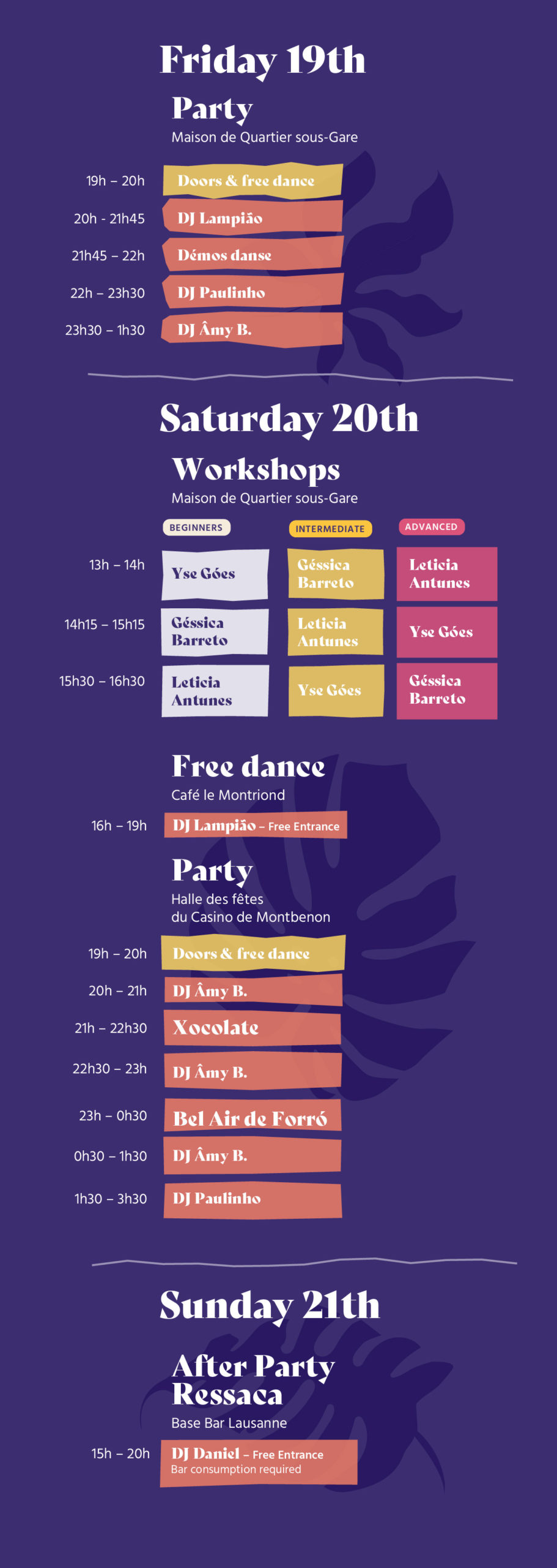 Since 2017, she has been organizing Forró da Âmy, Lyon’s only weekly Forró dance event, which highlights DJs and live bands specializing in traditional Brazilian culture and enriches the city’s nightlife. A seasoned artist, she has performed at numerous festivals and events across Europe and Brazil.